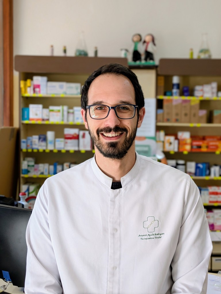 Farmacéutico cotitular de la Farmacia Agulló-Cascales de Torremanzanas desde el 2018. Me licencié en Farmacia en la Universidad Miguel Hernández y después estudié un Master de Nutrición, Tecnología y Seguridad Alimentaria en la Universidad de Murcia. Tras unos años trabajando como técnico de calidad en la industria alimentaria, mi mujer, que hasta entonces estaba trabajando de farmacéutica adjunta, decidió apostar por la farmacia rural y juntos nos hicimos cargo de la que hoy es nuestra farmacia. Desde entonces damos servicio como farmacéuticos rurales al que hoy consideramos nuestro pueblo, Torremanzanas.